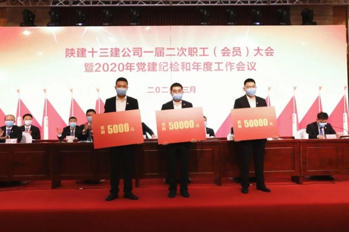 大會(huì)號(hào)召,公司全體職工要緊密團(tuán)結(jié)在以習(xí)近平同志為核心的黨中央周圍,深入貫徹公司一屆二次職工(會(huì)員)大會(huì)暨2020年黨建紀(jì)檢和年度工作會(huì)議精神,凝心聚力,務(wù)實(shí)擔(dān)當(dāng),不負(fù)韶華,篤定前行,為實(shí)現(xiàn)陜建十三建公司高質(zhì)量發(fā)展和“百億”十三建目標(biāo)不斷奮進(jìn),為陜建集團(tuán)實(shí)現(xiàn)整體上市和跨入世界500強(qiáng)再立新功。