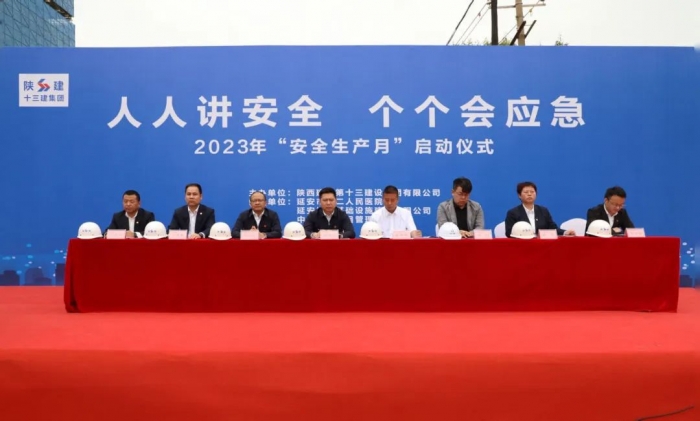 6月2日,陜建十三建集團在第二人民醫(yī)院改擴建項目項目部舉行2023年“生產安全月”啟動儀式。延安市第二人民醫(yī)院院長武劍峰、延安城投基礎設施建設有限公司副總經理習智、集團總工程師王弘起、副總經理楊永宏等出席啟動儀式。