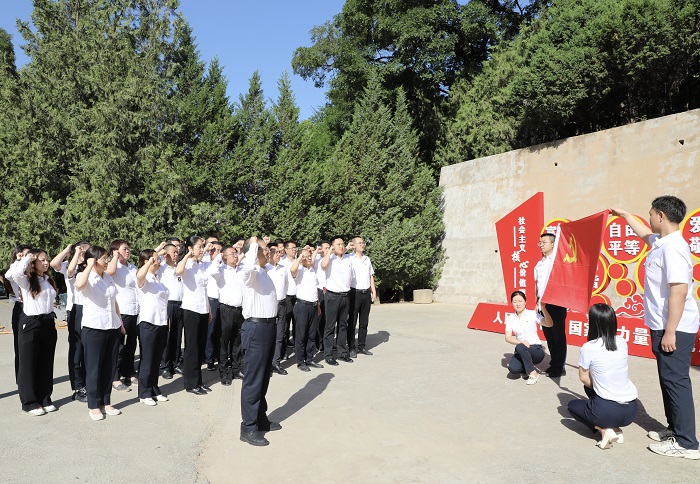 在楊家?guī)X革命舊址,集團(tuán)黨委書記、董事長卜國平帶領(lǐng)全體黨員,面對黨旗高舉右手,齊肩握拳,再次莊嚴(yán)宣誓。“我志愿加入中國共產(chǎn)黨……隨時準(zhǔn)備為黨和人民犧牲一切,永不叛黨。”鏗鏘恢宏的誓詞,聲聲震耳,強(qiáng)烈震撼著在場的每一位黨員,一字一句,神圣而豪邁,充分體現(xiàn)了黨員同志們對中國共產(chǎn)黨的無限忠誠和熱愛。隨后,在講解員的引導(dǎo)下,大家先后參觀中央大禮堂,毛澤東、朱德、周恩來等老一輩無產(chǎn)階級革命家故居,了解了黨的七大的歷史背景、會議過程和重要意義,重溫艱苦奮斗、自力更生的延安精神。